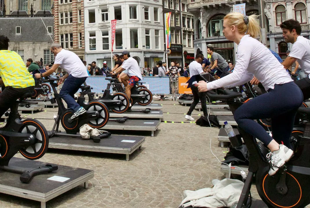 Op de Dam in Amsterdam verscheen een pop-up spinning studio waar iedereen kon meedoen. Met een energieke trainer, aanstekelijke muziek en een continue stroom aan enthousiaste deelnemers werd het een bruisend evenement dat mensen in beweging bracht voor het goede doel.