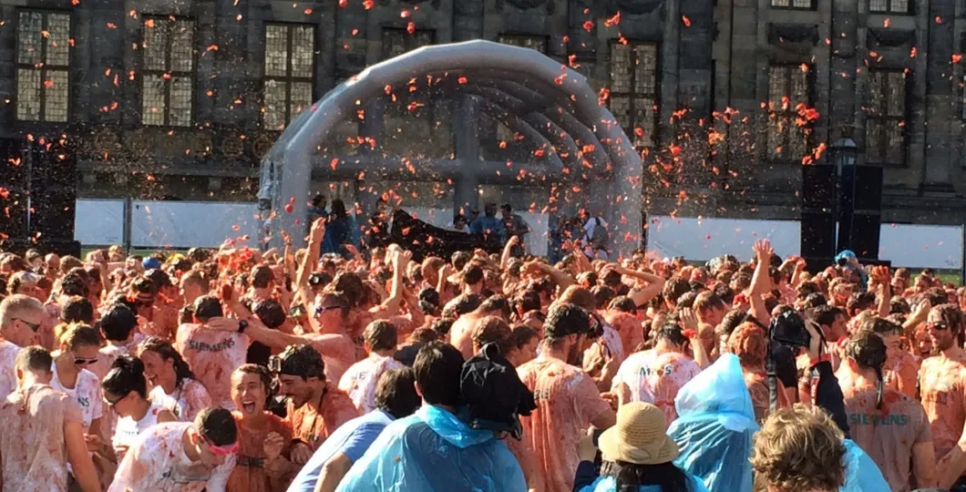 We organiseerden het Tomatengevecht op de Dam: een massaal tomatengevecht op de Dam met 2000 deelnemers en 200.000 tomaten. Het evenement werd zorgvuldig gepland, inclusief veiligheidsmaatregelen en een duurzaam plan voor de overgebleven tomatenpulp. We zorgden voor uitgebreide media-aandacht, zowel vooraf als tijdens het evenement.