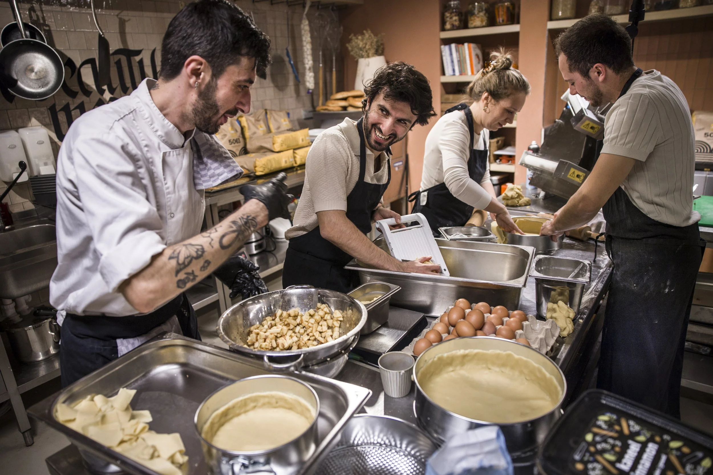 Samen met vluchtelingen ontwikkelden we een eigentijdse variant op de oer-Hollandse appeltaart: de Ter Apeltaart. Ze creëerden het recept, bakten de taarten en verkochten ze in een pop-up bakkerij in Amsterdam. Het motto: koop een taart, maak een punt.
